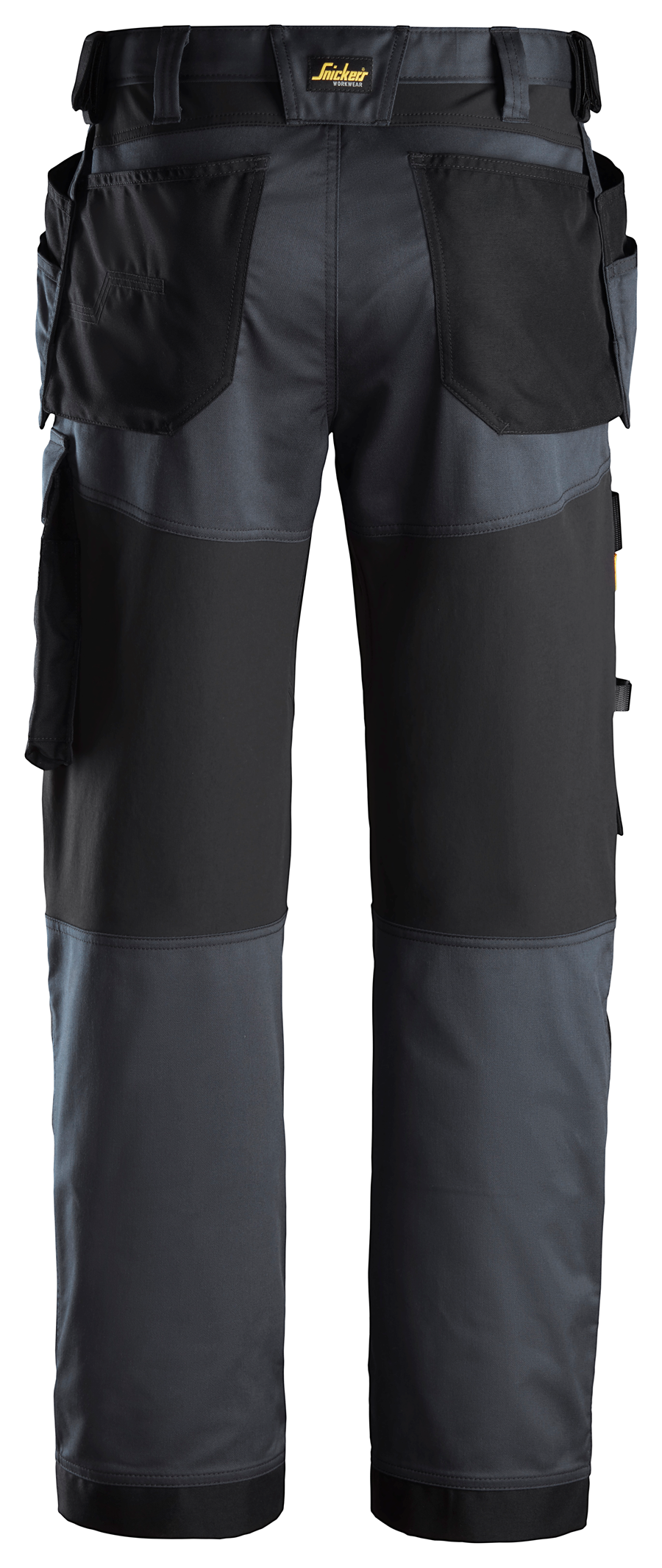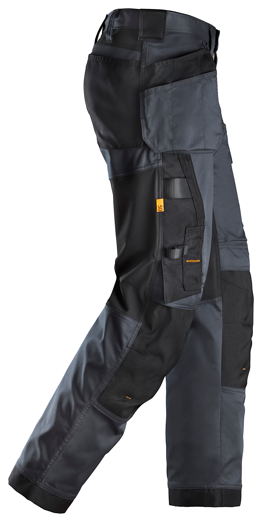 Disse AllroundWork stretch bukser med loose fit design og hylsterlommer er designet til at være fleksible og behagelige. 2-vejs stretchen er suppleret med paneler med 4-vejs stretch bagpå for at give dig yderligere bevægelsesfrihed. Bukserne har EN 14404 certificeret knæbeskyttelse med forstærkede KneeGuard lommer, hvilket gør dem ekstra behagelige og brugervenlige.